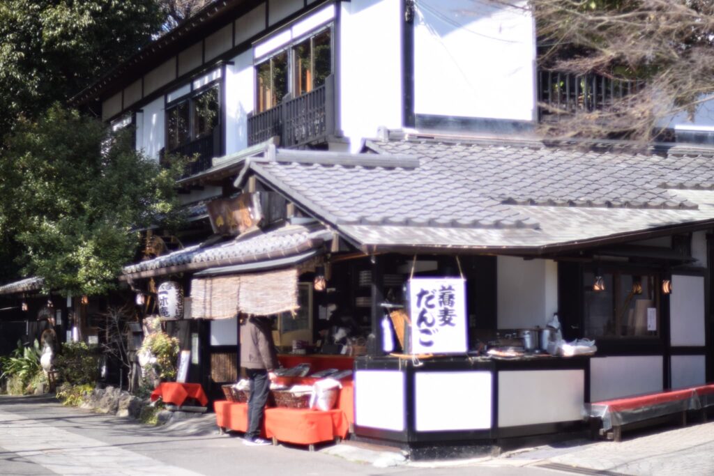 深大寺はそばが有名で、門前のとおりには多くのそば屋さんが立ち並びます。ソバ団子も有名で、食べ歩きを楽しむ人の姿も多く見かけられます。
