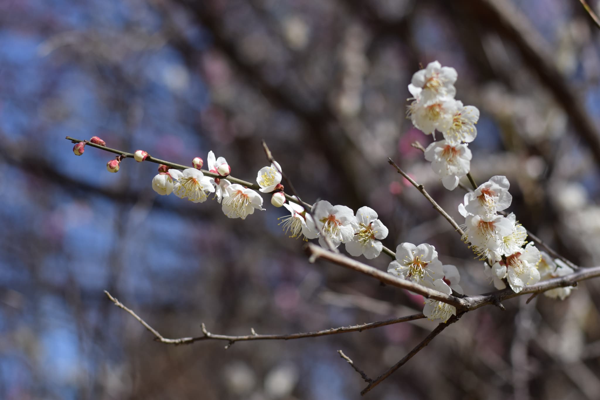 大人になるまで知らなかったのですが、花の色ではなく枝や幹の断面が赤いか白いかで紅梅・白梅に分類するそうです。